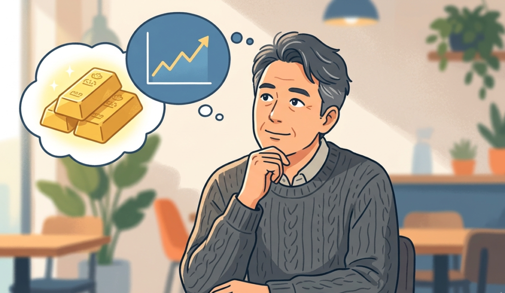 一方で、デメリットとしては、マーケットが安定して株価が上昇するような局面では価格が下がりやすいこと、保有していても金利は付かないことなどが挙げられます。長短を考えると、資産を全て金で保有するのではなく、分散された資産の一部として保有するのがお勧めです。
